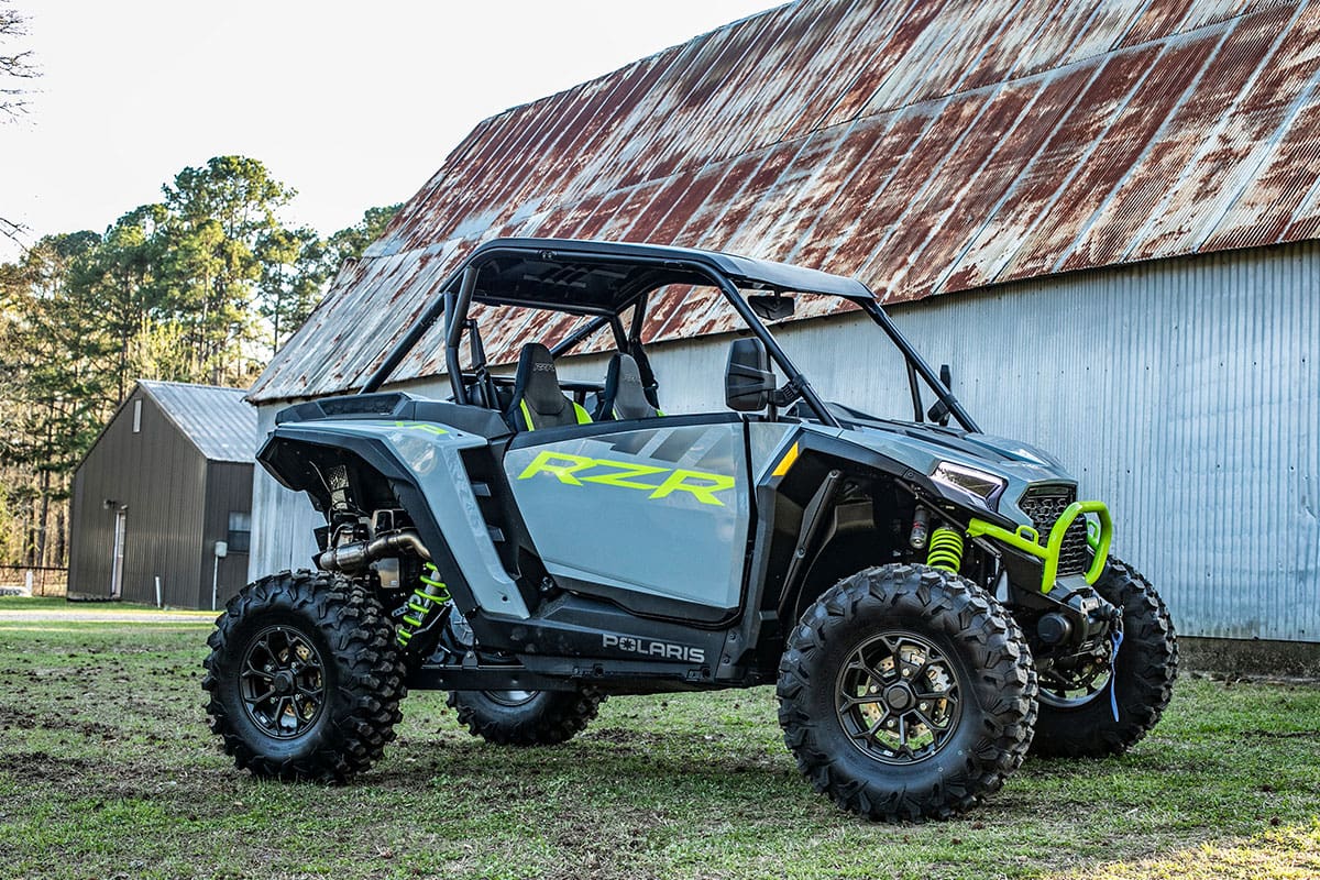 The Polaris RZR XP 1000 is one of the most capable sport machines in the Polaris lineup, available in both 2-seat and 4-seat versions. Powered by a 114-horsepower engine, it features a 64-inch wide stance for excellent stability and performance across trails, rocks, and rough terrain. Each machine comes equipped with Ride Command system with GPS navigation and rear camera, along with Rockford Fosgate Stage 3 audio. It also includes 30-inch tires, a Polisport roof, Walker Evans Racing shocks, retractable three-point harnesses, and a factory-installed winch for added capability.