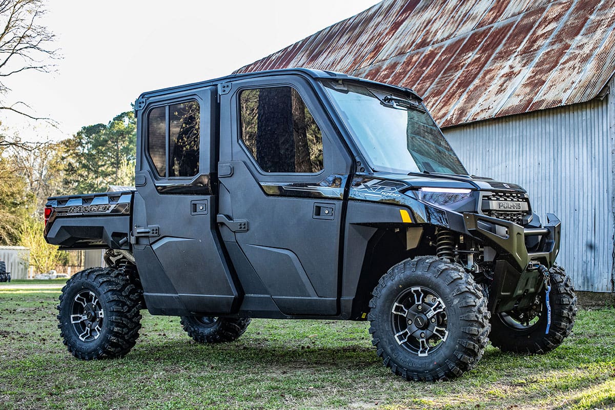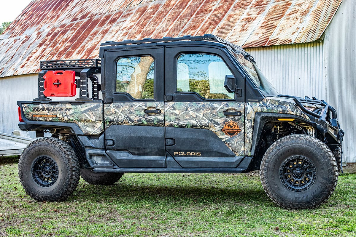 The Polaris Ranger XD 1500 Northstar 2-seat Edition is Polaris’ top-of-the-line side-by-side, powered by a 115-horsepower engine and built to handle the toughest terrain. It’s equipped with 32-inch Obor tires for rocks and rough roads, plus Ride Command GPS navigation and Stage 3 Rockford Fosgate audio. The fully enclosed Northstar cab with heat and A/C keeps you comfortable in any weather, while the racks make it easy to haul all your gear for the day. Best of all, it’s street legal around the Hochatown and Broken Bow area.
