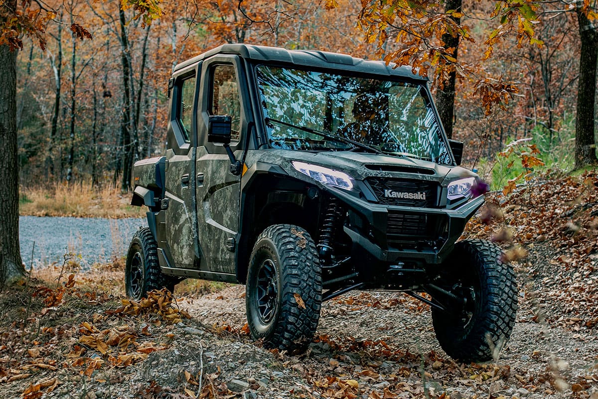 The Kawasaki Ridge Crew HVAC is a premium enclosed machine built for comfort and durability. It features factory heating and air conditioning, Garmin GPS navigation, and rugged 32-inch BFGoodrich KO3 tires for dependable performance on rough terrain. The crew seating accommodates up to six passengers, making it ideal for families and groups wanting to explore together. Street legal around Hochatown, so you can ride straight from your cabin to trails, restaurants, and scenic roads.